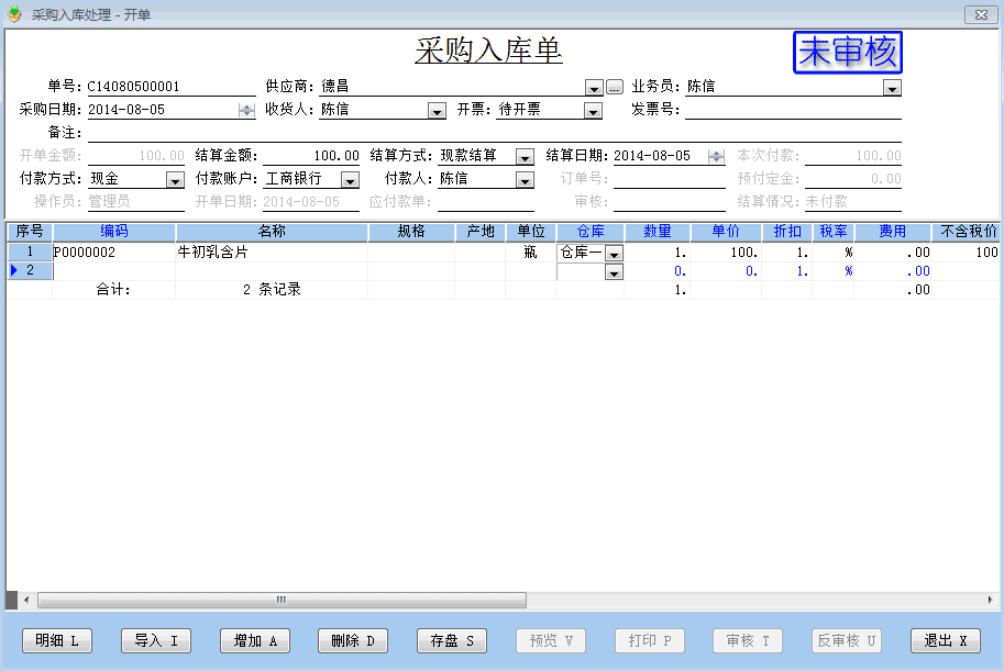 海思食品進銷存管理軟件(銷售管理軟件)采購入庫
