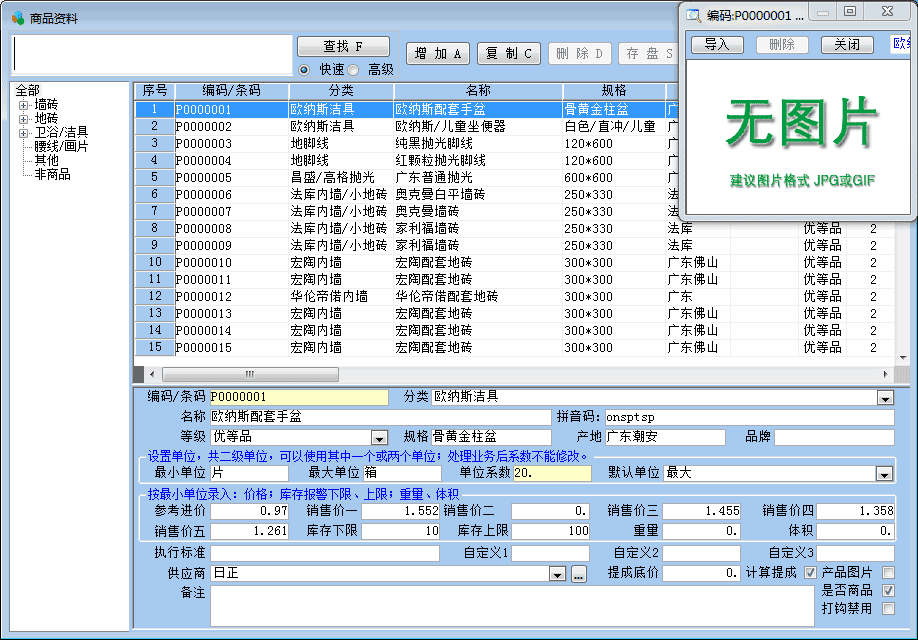 海思陶瓷進(jìn)銷(xiāo)存管理軟件(銷(xiāo)售管理軟件)商品資料